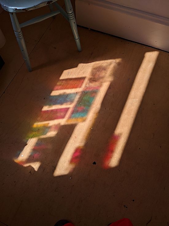 This is me in my kitchen. I move around my house to create artwork, my studio is a small room upstairs.